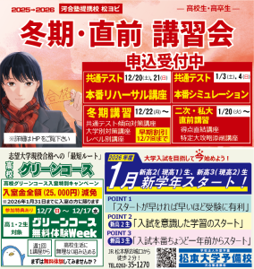 11/14(金) 市民タイムスに、冬期講習会・グリーンコース無料体験Week・グリーンコース新学年の案内が掲載されました。